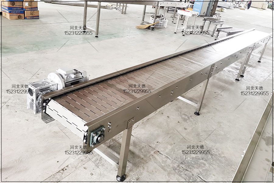 2、選用不同形式的平板鏈,可實現(xiàn)平面輸送、平面轉(zhuǎn)彎、提升下降爬坡等各種功能。