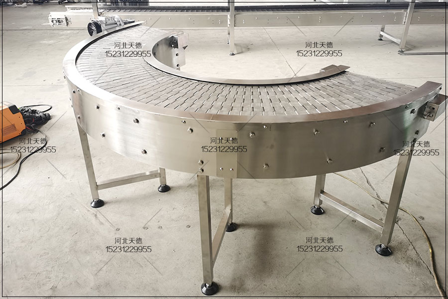 2、鏈條轉(zhuǎn)彎機(jī)故障預(yù)防措施及日常維護(hù) 傳送鏈條的組裝:鏈條轉(zhuǎn)彎機(jī)嚴(yán)格按出廠時(shí)的配對鏈條進(jìn)行組裝,鏈條長度按照安裝要求生產(chǎn),鏈條不得有扭曲現(xiàn)象;鏈板輸送帶、接鏈環(huán)、連接鏈的安裝位置與方向應(yīng)符合安裝的要求;接鏈環(huán)焊縫 應(yīng)向上,以減少鏈條轉(zhuǎn)彎機(jī)環(huán)焊縫的磨損及焊縫對槽底板的磨損,以延長鏈條接鏈環(huán)的使用時(shí)間;接鏈環(huán)須按安裝要求正確連接,螺栓或銷子須安裝到位;安裝輸送機(jī)的過程中嚴(yán)禁頻繁點(diǎn)動(dòng),預(yù)防零部件損壞。