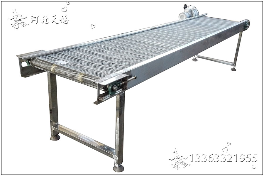 面包蛋撻輸送機,烘培冷卻流水線設(shè)備常用的有不銹鋼網(wǎng)帶輸送機,食品皮帶輸送機以食品輸送帶作牽引件輸送物料,運行平穩(wěn)、造型美觀、使用壽命長。運用食品輸送帶的連續(xù)或間歇運動來輸送各種輕重不同的物品,面包蛋撻輸送機輸送帶強度高、伸縮性小、不易變形、易保養(yǎng),而且衛(wèi)生、耐腐蝕,在惡劣工作環(huán)境中性能強,使用壽命長。面包蛋撻輸送機有適用于食品、副食品、水產(chǎn)品的加工生產(chǎn)線,包裝輸送線和電子、金屬配件加熱、烘烤線,在食品、醫(yī)藥、日用化工等行業(yè)廣泛使用。