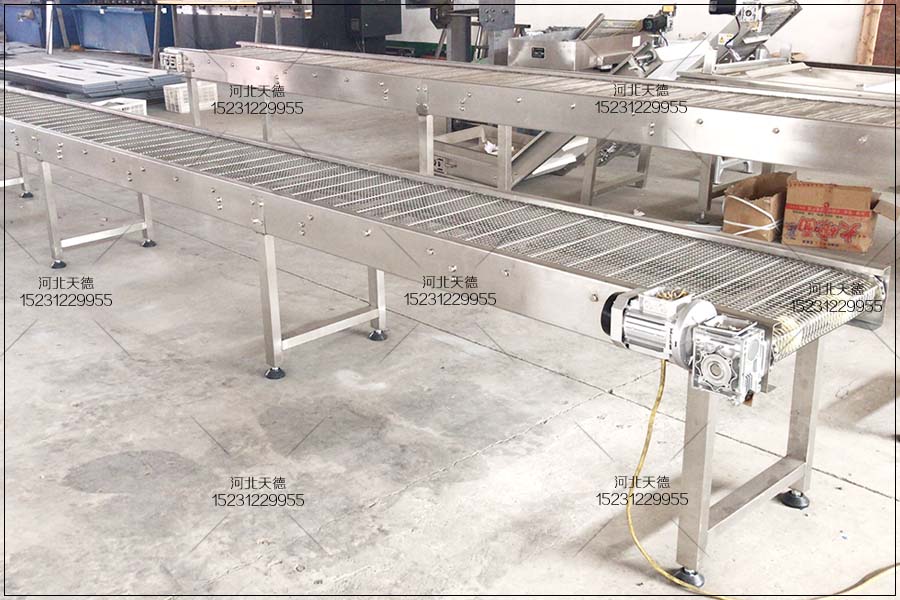 網(wǎng)鏈輸送機的長度是2.5米,有效使用寬度是450毫米,輸送高度為1米,網(wǎng)鏈輸送機是選擇鏈條輸送帶來輸送膠條的,鏈條輸送帶的絲徑為1.5mm,孔徑為10*20mm,為了能夠?qū)崿F(xiàn)膠條在水里面進(jìn)行冷卻,我們需要在輸送機的底部安裝接水槽,接水槽里面放上需要的水量。整機要采用不銹鋼304材質(zhì)。每分鐘輸送20米。