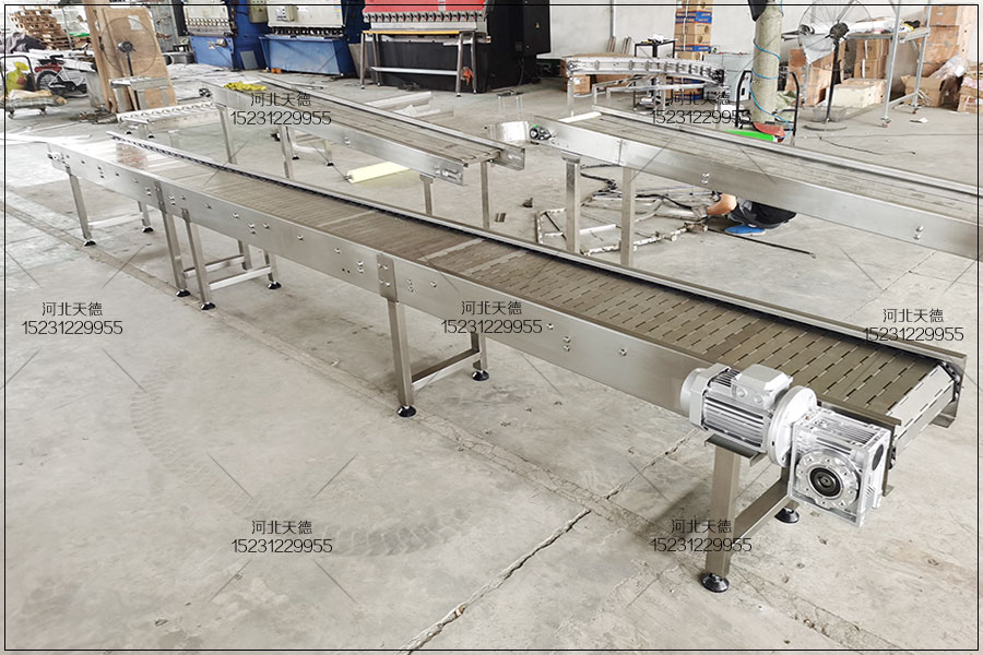 鏈板輸送機歡迎來電定制河北天德雞胸肉油炸流水線鏈板輸送機:15231229955 網址:http://www.szhuirun.com/