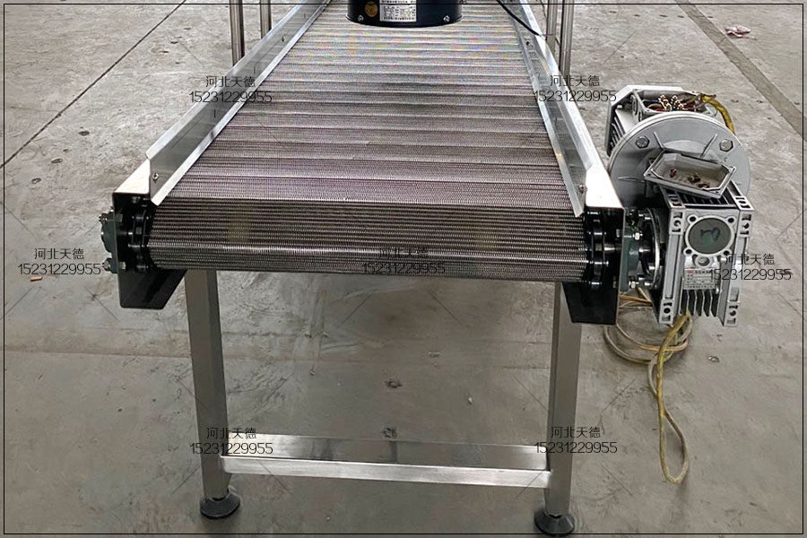 鏈條式網(wǎng)帶輸送機(jī) 面條蒸煮鏈條式網(wǎng)帶輸送機(jī)控制模塊式網(wǎng)帶用拓寬在網(wǎng)帶全部總寬上的塑膠固接銷,將注塑工藝的網(wǎng)帶鏈?zhǔn)捷斔蛶囱b成自鎖互鎖模塊。這種形式提升了鏈條輸送帶的抗壓強(qiáng)度,并能 夠組接成 一切須的總寬和長短。隔板與檔板還能用固接銷自鎖互鎖,變成不銹鋼鏈板輸送帶總體構(gòu)件之一。