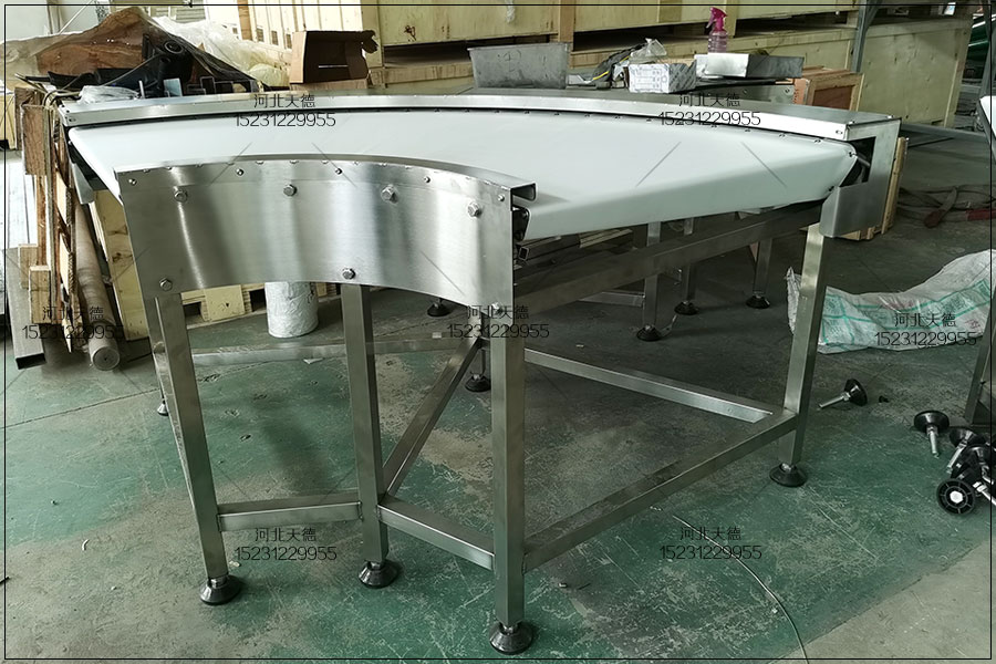 用于承托輸送帶與其上面的物料,防止作業時輸送帶產生過大的重量導致變形。 環形轉彎皮帶輸送機托輥有上托輥(載運托輥)和下托輥(空載托輥)兩種。 上托輥:平托輥和凹面托輥,又有單輥式和多輥式。 下托輥:平托輥 托輥間距:一般0.4-0.5m 物料輕取1-2m >20千克成件品 間距<物料在運輸方向長度1/2 皮帶輸送機