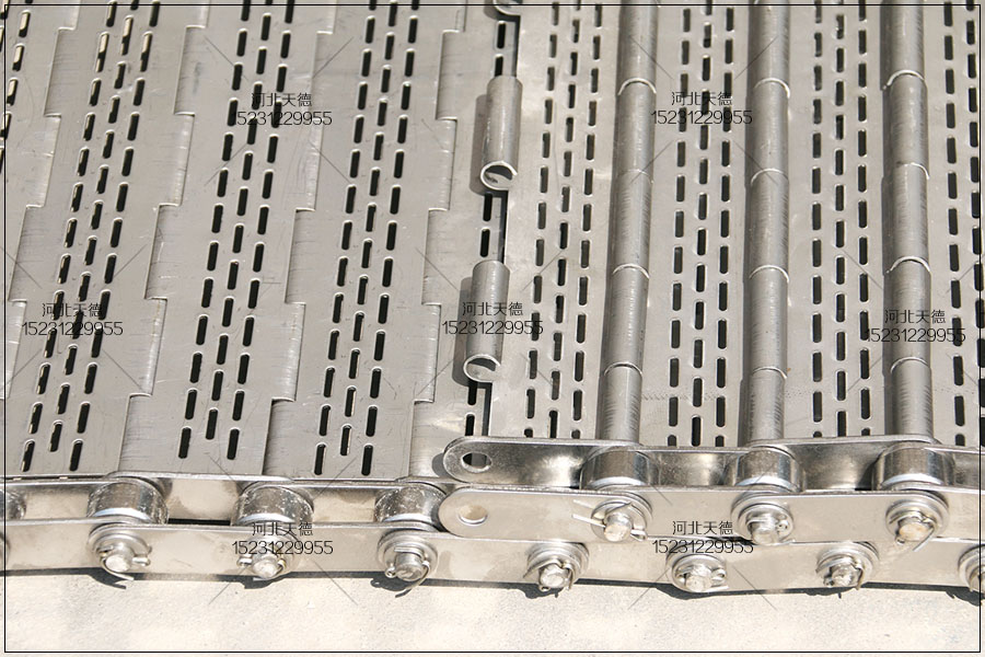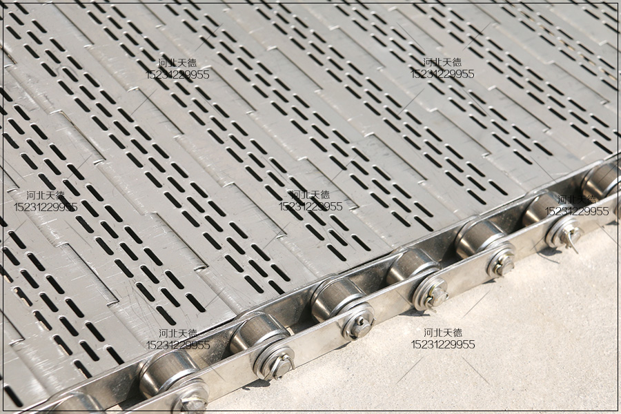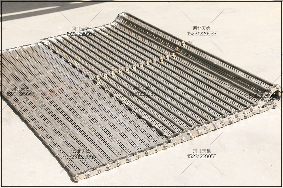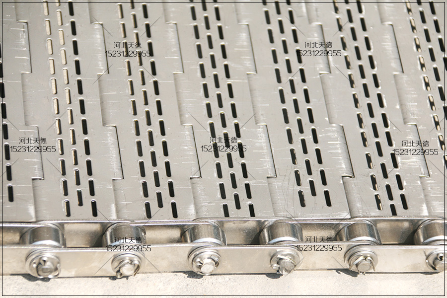 采用不銹鋼304材質(zhì)板材,鏈板不銹鋼輸送帶的中 心 距為560毫米,鏈條節(jié)距為38.1毫米,桿直徑為8毫米