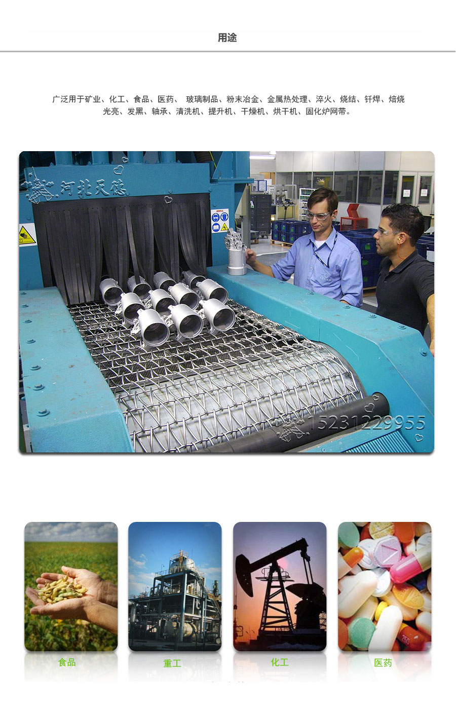 直軸型網帶:由左右交替的網條通過直串條聯結而成,該系列網帶網孔較密,網孔間距均勻,能使網帶行走平穩。該系列網帶適合于承載體積較小而質地相對較重的輸送線。