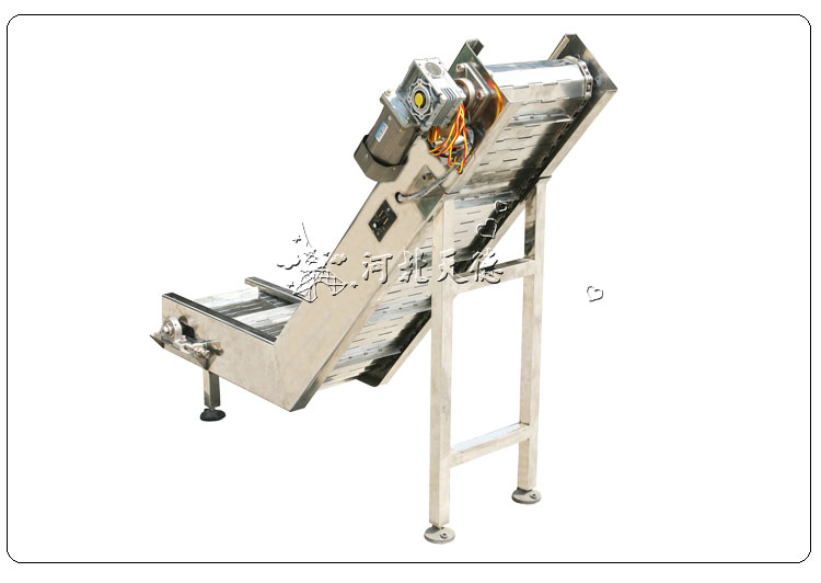 3.鏈板輸送機一般都可以直接用水沖洗或直接侵泡在水中。設備清潔方便,能滿足食品、飲料行業對衛生的要求。