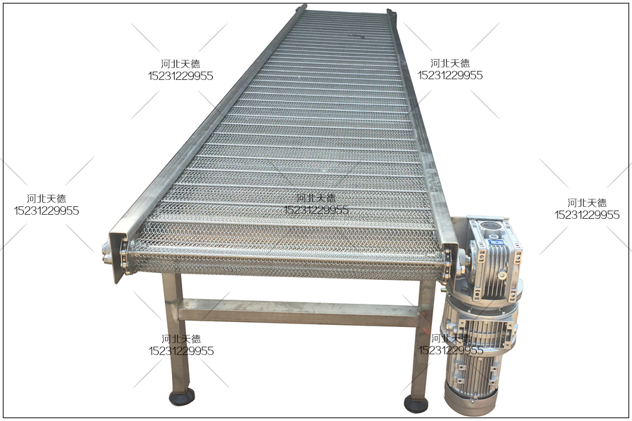 網(wǎng)帶輸送機(jī)的長度為7米,鏈條不銹鋼輸送帶的長度為14米。